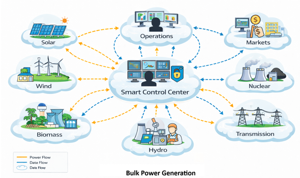 - Load control managed through EMS with support from data analytics platforms for demand optimization.